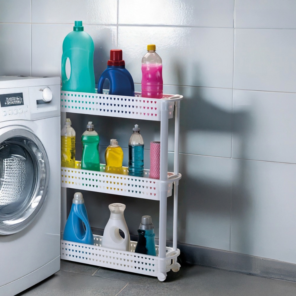 Prateleira de Plástico com Roda para Cozinha e Banheiro 3 Divisórias 53x26cm - Arthi