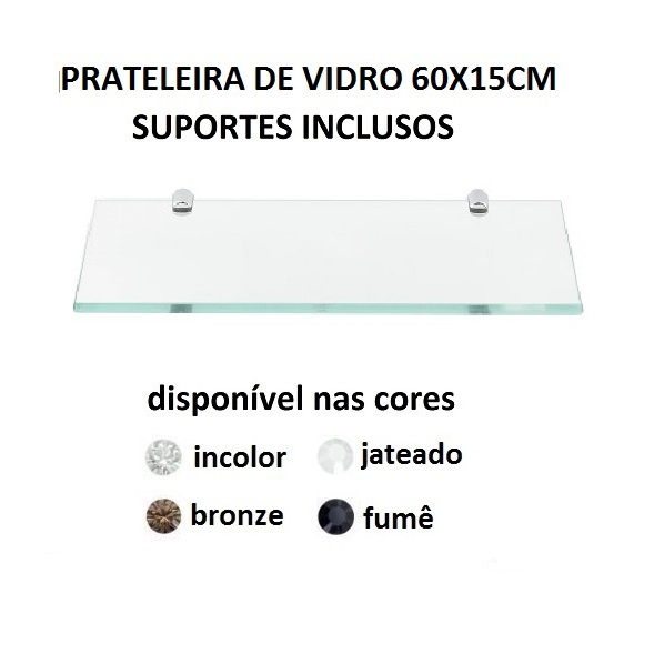 Prateleira de Vidro 6015 cm 60x15 com Suporte para banheiro decoração