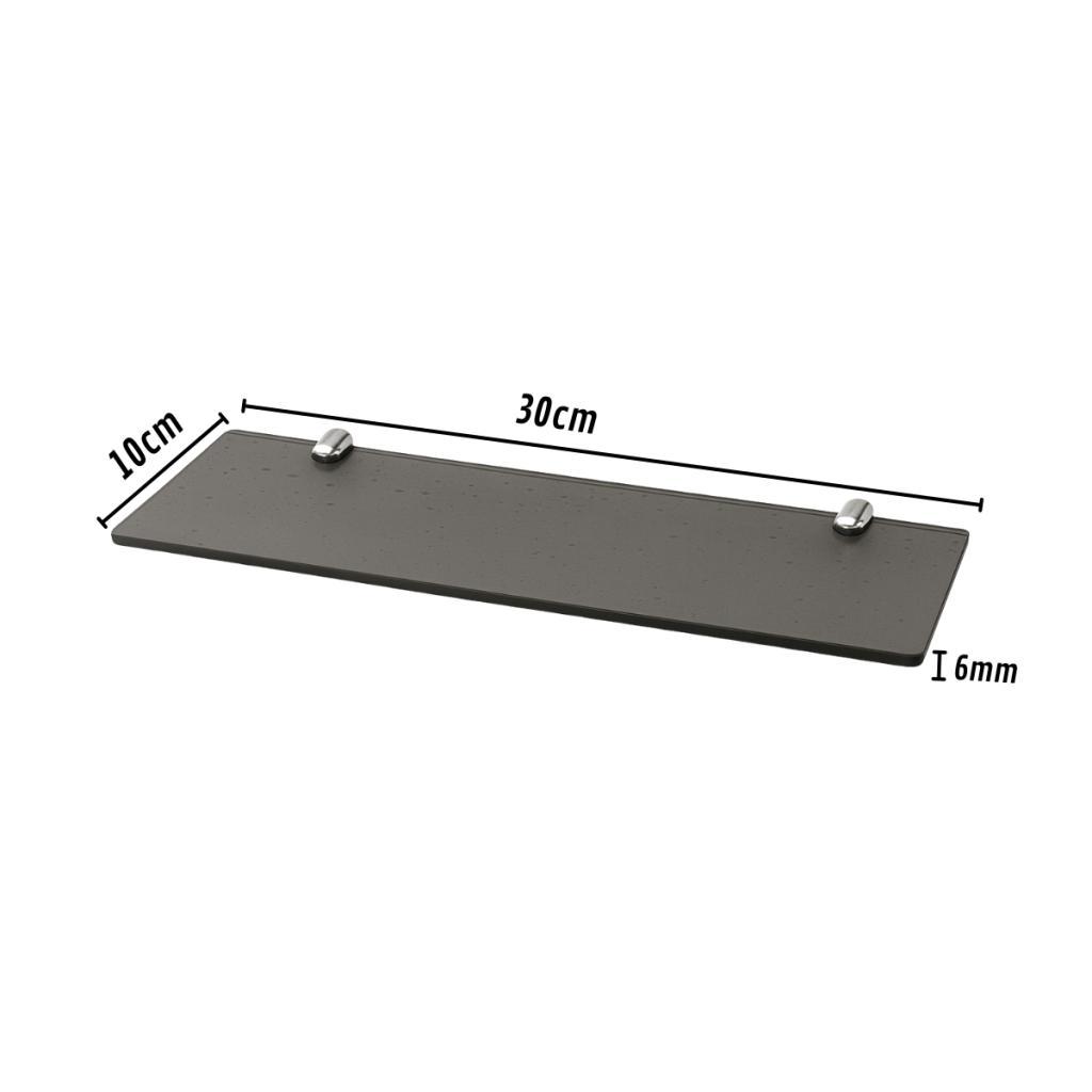 Prateleira de Vidro Porta Objetos 30cm Vidro Fumê com Fixação Dupla Cromada Porta Shampoo Reto