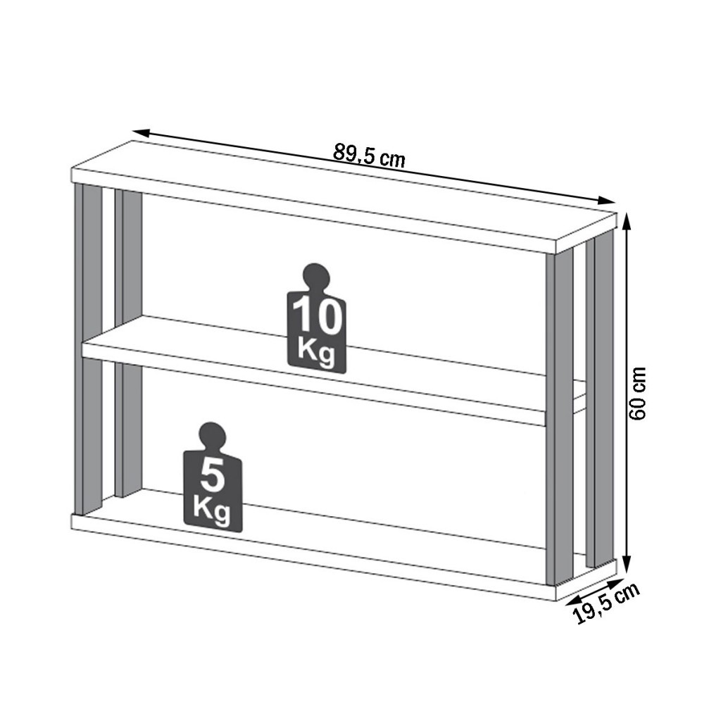 Dimensões: - Altura: 60,00 cm - Largura: 89,50 cm - Profundidade: 19,50 cm - Peso: 9,000 kg Descrição: O(a) Prateleira Decorativa Industrial 1 Prateleira 100% Mdf Freijó/Preto Fosco F26 - Pradel é produzido em 100% MDF na escala de brilho Brilho e Fosco, e possui um grau de dificuldade de montagem: Médio. Seu revestimento/acabamento é: Pintura UV. Infelizmente a Loja não oferece serviço de montagem, deixamos essa informação bem clara em todas as nossas páginas de produto. Onde especificamos que os móveis chegarão desmontados, e que a montagem fica por conta do cliente. Como não oferecemos esse serviço não embutimos o mesmo no preço dos produtos, ou seja, maior economia para você! Todos os nossos móveis também acompanham o manual de montagem, e caso você queira, pode realizar a montagem você mesmo, sempre especificamos os graus de montagem dos produtos. Nos casos de grau baixo e médio, com pouco ou nenhum conhecimento, você mesmo pode efetuar a montagem, e fazer essa economia. Apenas nos graus de montagem alto, recomendamos a contratação de um montador com experiência, visto que são montagens mais complicadas. A montagem é feita com Minifix.. Este móvel é indicado para que seja utilizado no(a) Quarto e Escritório, dando um toque especial no cômodo de sua casa. Para que você mantenha seu produto sempre em ótimo estado, recomendamos que use apenas um pano seco ou levemente umedecido, sem o uso de quaisquer produtos abrasivos. A Loja garante aos clientes, 90 dias de garantia nos produtos, porém, recomendamos que entre em contato com o fornecedor/marca do produto, pois o mesmo(a), pode garantir um prazo maior de garantia. Lembrando ainda que: quaisquer objetos decorativos que aparecem nas imagens, não acompanham o produto. Características: - Espessura da Estrutura: 15 mm 24 mm - Possui Gavetas?: Não - Possui Portas?: Não - Possui Vidro?: Não - Possui Espelho?: Não - Possui Prateleiras?: Sim - Quantidade de Prateleiras: 2 - Peso Suportado nas Prateleiras:: 5 Kg - Possui Puxadores?: Não - Possui Ripamento?: Não - Linha ou Coleção: . - Montagem Invertida?: Não Pode ser Montado Invertido - É frágil?: Sim - Possui Nicho?: Não - Material da Estrutura: 100% MDF - Escala de Brilho: Brilho e Fosco - Material do Tampo: MDF - Espessura do Tampo (mm): 24 - Possui Rodízios?: Não - Possui Pés?: Não - Possui Borda de PVC nas Bordas?: Sim - Tipo de Prateleira: Cubo - Peso Suportado (Kg): 5 - Possui Espelho: Não - Acompanha: MANUAL - Acompanha Manual de Montagem: Sim - Como os Móveis Chegarão na Minha Casa: Desmontado em caixas, acompanhado de todas as peças, ferragens e manuais para montagem. - Grau de Dificuldade da Montagem: Médio - Necessita de Montagem: Sim - Sistema de Montagem: Minifix. - Garantia (dias): 90 - Indicação de Uso: Quarto e Escritório - Observação: Objetos decorativos que aparecem nas imagens, não acompanham o produto. - Recomendação de Manutenção: Usar pano seco ou levemente umedecido, não usar quaisquer produtos abrasivos. - Revestimento /Acabamento: Pintura UV
