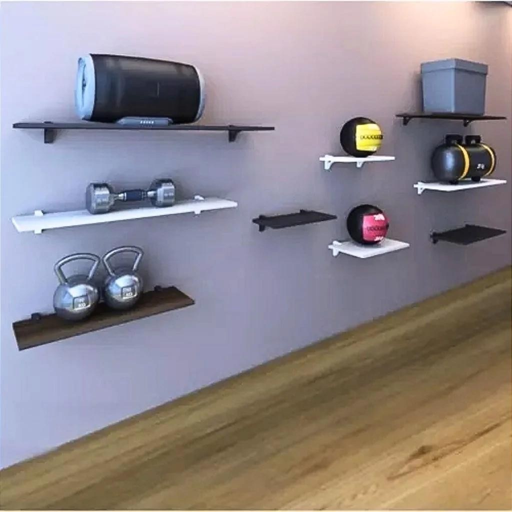 Prateleira Em Madeira MDP Branco Com Suporte Clip Invisível Metálico Decorativo Organizador Parede