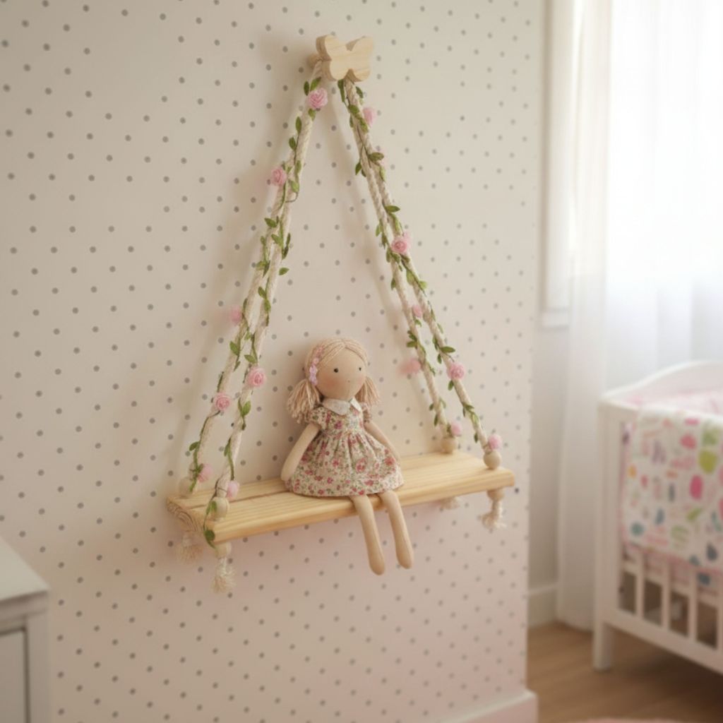 Prateleira Estante Balanço Suspensa Safari Madeira com Gancho Decorativo Quarto bebê infantil casa e Decoração 40x10