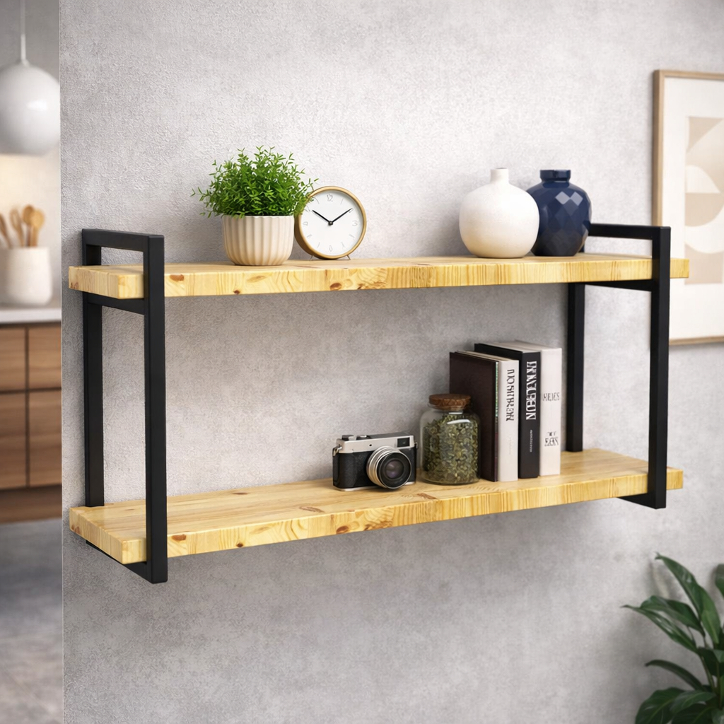 Destaques do Produto: - Design Versátil: Combina o estilo industrial com um toque rústico, perfeito para diversos ambientes, como cozinhas, salas, escritórios, quartos e áreas de serviço. - Material Resistente: Fabricada em madeira de pinus natural com suportes em Ferro Metalon soldado, garantindo alta durabilidade e resistência. - Fácil Instalação: Acompanha kit de instalação com buchas e parafusos, além de ser compacta e prática para montagem. - Dimensões: - Altura Total: 37cm - Altura Entre as Prateleiras: 28cm - Largura da Madeira: 20 Centimetros - Comprimento: de 40cm ate 100cm - Garantia: 12 meses de garantia para maior tranquilidade na sua compra.