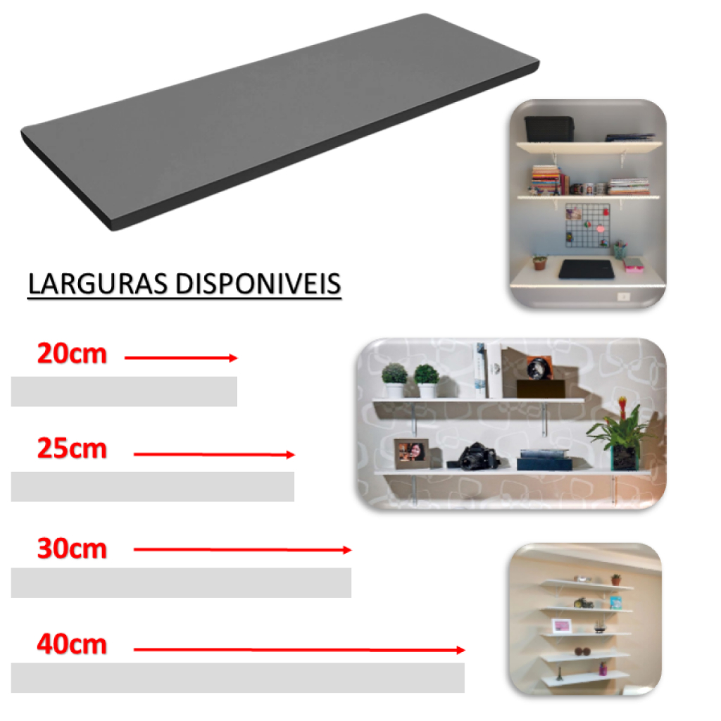 Prateleira Lisa Branca / Preto MDF - MDP 1.5 cm Espessura Largura 20 - 25 - 30 - 40 cm