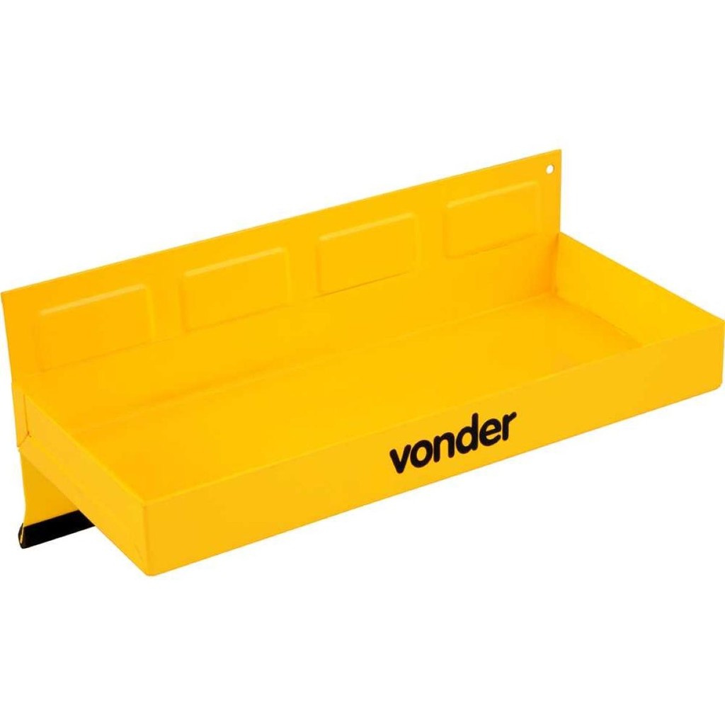 Código do Fornecedor: 3599268115 Marca: Vonder Conteúdo da embalagem: 1 Prateleira Magnética 268X115X30mm Vonder Destaques e diferenciais: Possui fixação por ímãs, garantindo uma capacidade máxima de carga de até 3,6 kgf, além de pintura eletrostática, que oferece maior resistência à corrosão. Aplicações e dicas de uso: Indicada para armazenagem de peças e componentes metálicos, tais como: parafusos, pregos, chaves, entre outros. Garantia legal: 90 dias Detalhes Técnicos Material (tipo/composição): Aço carbono Acabamento: Pintura eletrostática a pó Capacidade máxima de carga (kgf): 3,6 kgf Dimensões externas: C x L x A: 270 mm x 116 mm x 120 mm Dimensões internas: C x L x A: 268 mm x 115 mm x 30 mm Profundidade da bandeja magnética: 30 mm Espessura da chapa: 0,6 mm Número de ímãs: 4 Cor: Vermelho Massa aproximada (peso) (kg): 0,70 kg