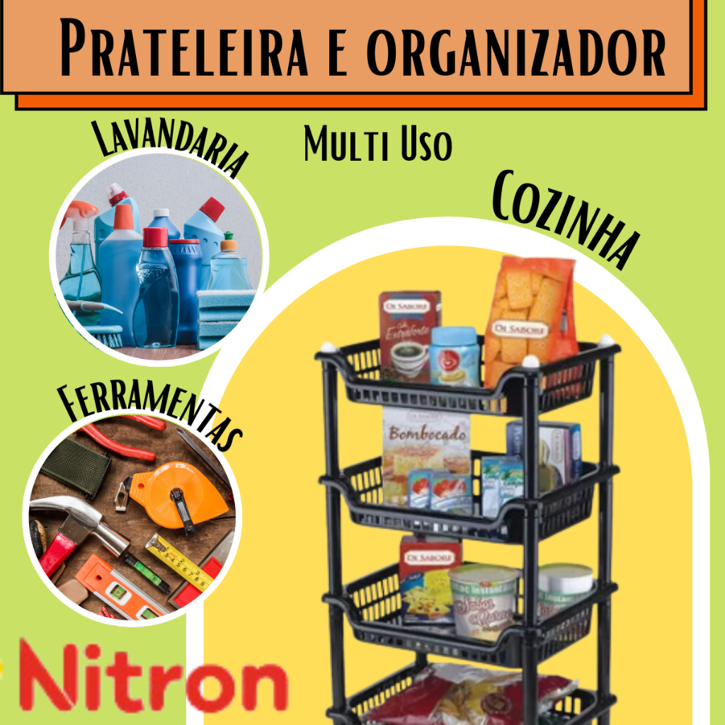 PRATELEIRA FRUTEIRA MULTI USO NITRON PRODUTO ORIGINAL A PRONTA ENTREGA Prateleira organizador multiuso com 4 andares desmontáveis. Ideal para alimentos, ferramentas, banheiro e utensílios em geral. Produzida em plástico PP injetado o que deixa mais resistente sua estrutura. BPA Free (Livre de BPA - O BPA é uma substância química que faz mal à saúde) Design alegre que se adequa em todos os momentos Material incrivelmente resistente CARACTERÍSTICA DO PRODUTO: Material: Polipropileno. Cor: Preto, Branco. Marca: Nitron. DIMENSÕES DO PRODUTO: Peso: 1410 g Largura: 39,5 cm Comprimento: 30 cm Altura: 70,5 cm NITRON A Nitron atua no mercado de utilidades domésticas em plásticos há 35 anos. Com mais de 300 itens em linha, hoje a Nitron é uma das principais fabricantes de utilidades domésticas em plástico do Brasil, resultado de uma atuação voltada principalmente na qualidade de seus produtos, investimentos constantes e modernização profissional, respeitando as principais necessidades e desejos de seus consumidores.
