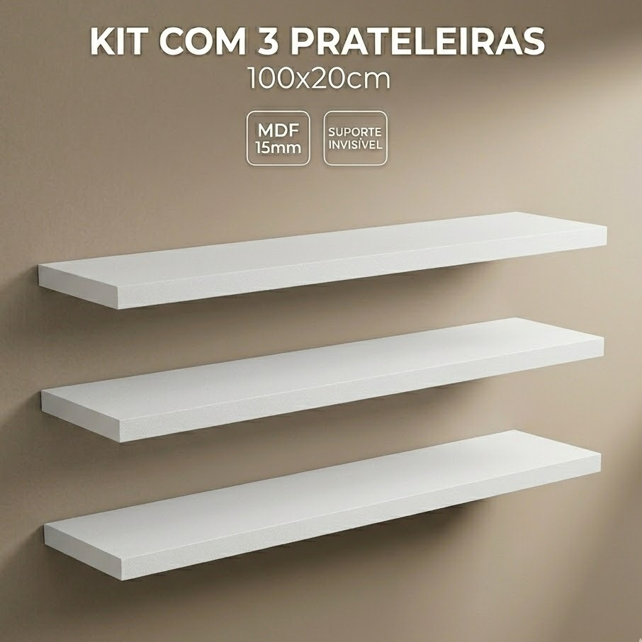 Prateleira para Parede 100x20cm MDF Preto – Kit com 1 a 3 Peças