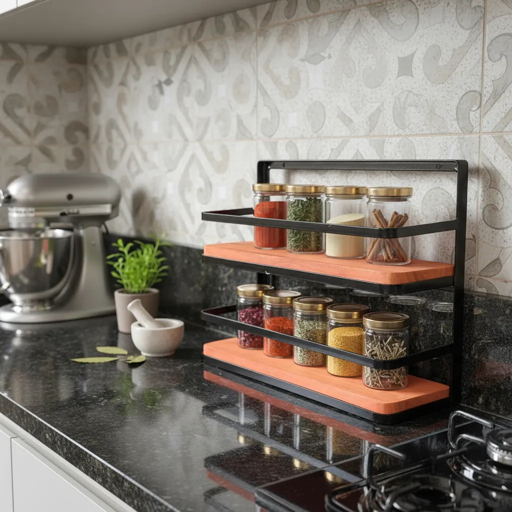 Prateleira Porta Condimentos Rustica Ferro e Madeira Mega OFERTA