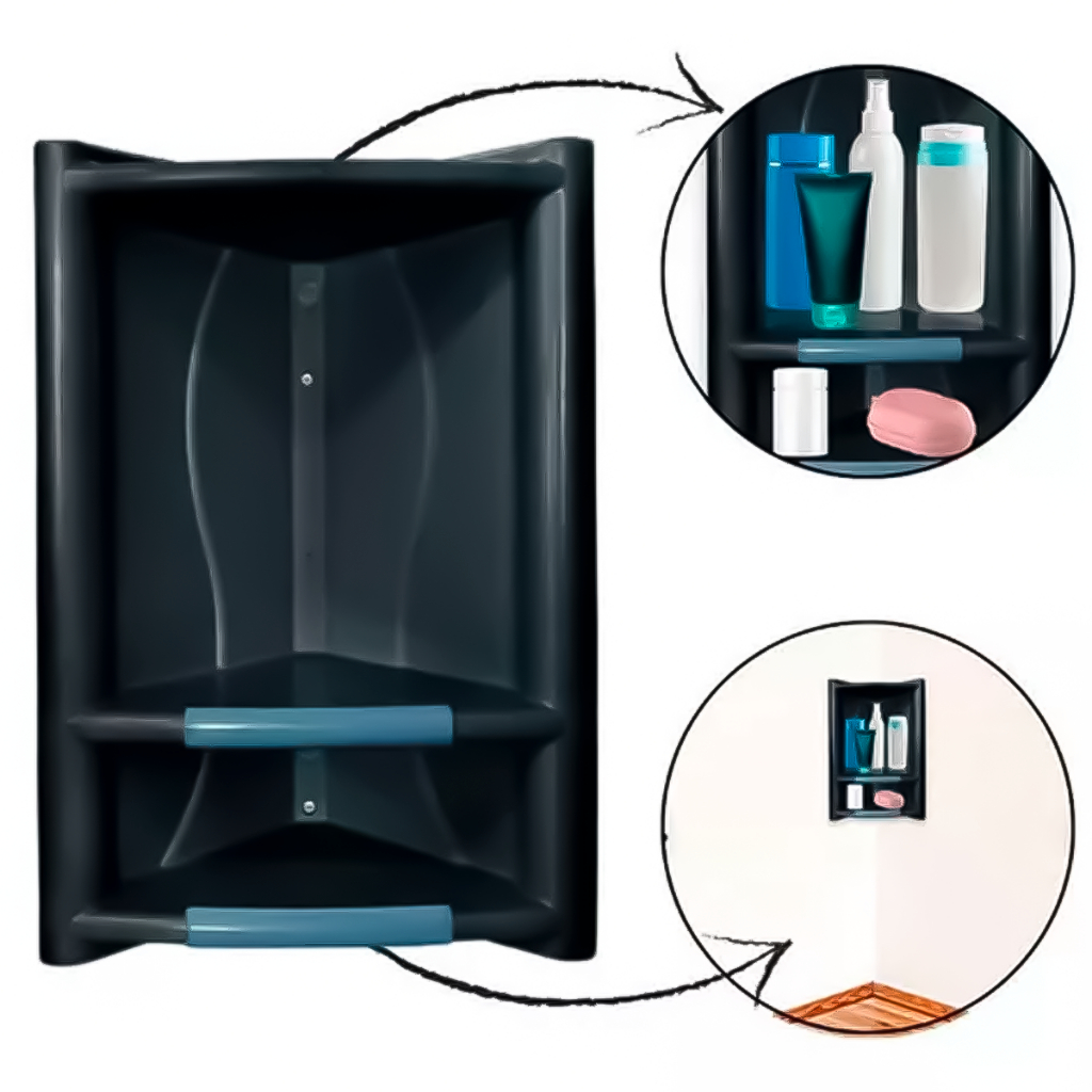 Prateleira Suporte Cantoneira Grande Para Banheiro Shampoo Sabonete Prático Em Plástico Preto
