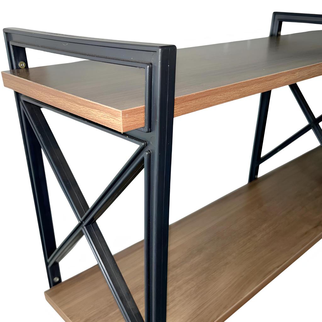 Prateleira X Industrial 2 Níveis 120cm Madeira Amêndoa Suporte Preto