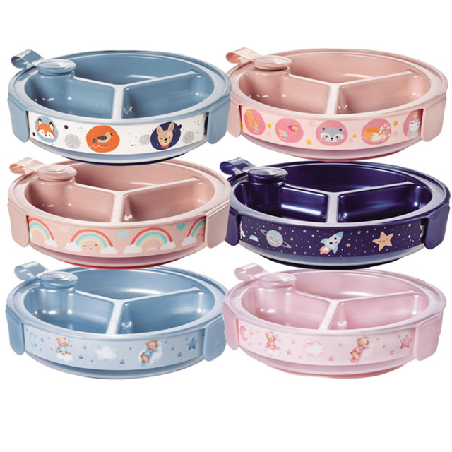 Pratinho Prato Intodução Alimentar Infantil com 3 Divisórias Térmico com Ventosa 410ml Reservatório Prato