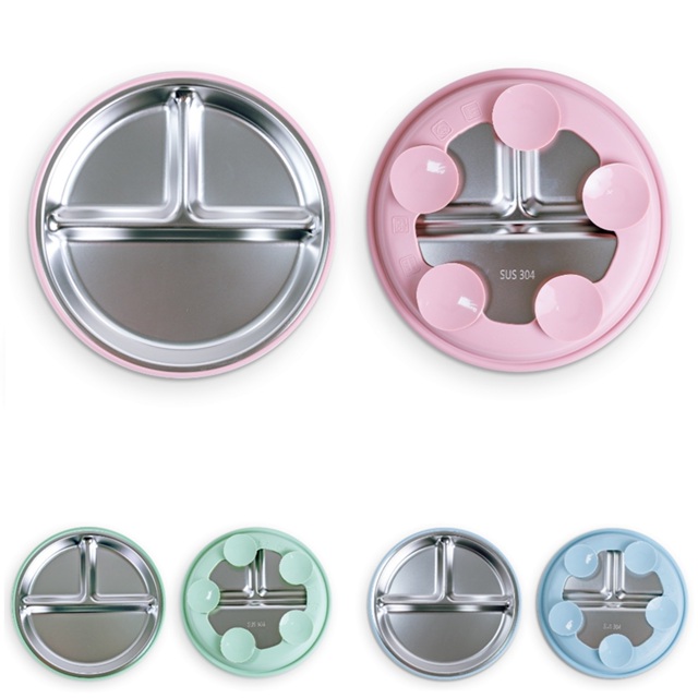 Prato Bebê Infantil Criança 3 Divisórias Inox Silicone Ventosas