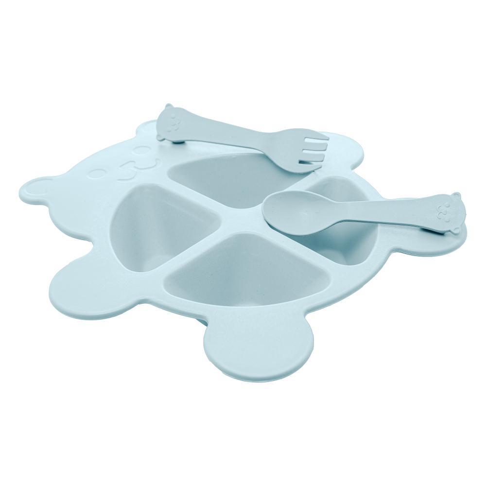 Prato com 2 Talheres Lyor Baby Bear de Bambu e PP Azul.