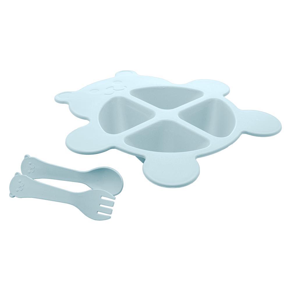 Prato com 2 Talheres Lyor Baby Bear PP e Bambu Azul