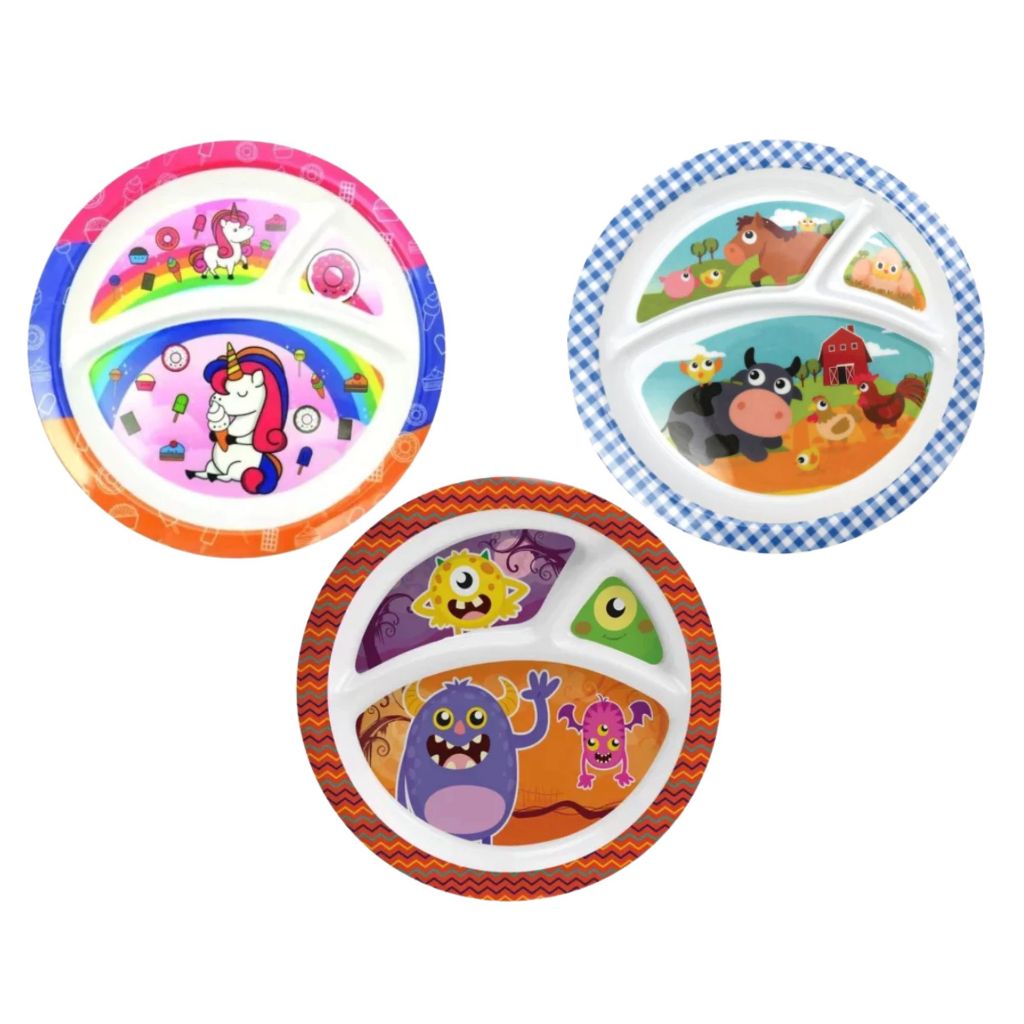Prato com Divisória Infantil 21,5cm Criança Refeição De Plástico BPA Free