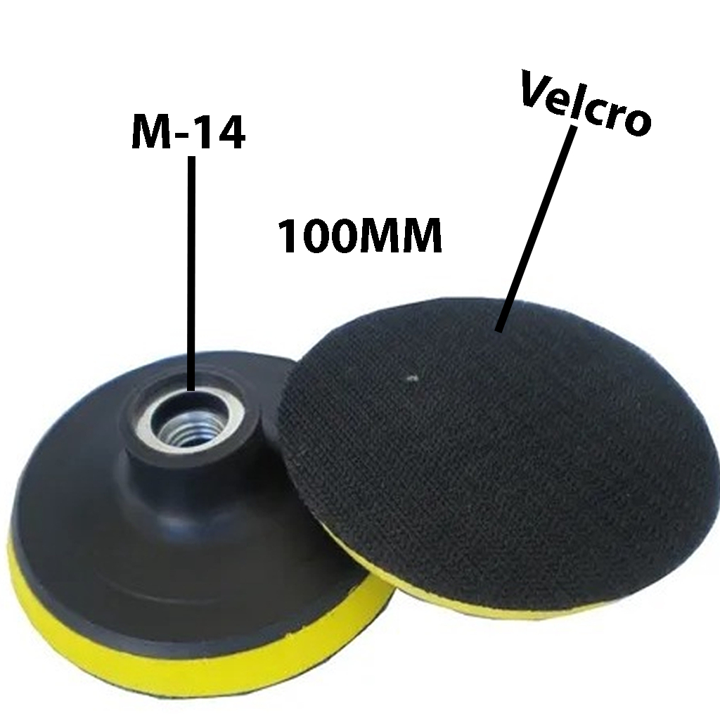 Prato De Espuma Suporte Com Velcro 100mm Com Rosca M-14 + Adaptador M-14 Esmerilhadeira E Furadeira