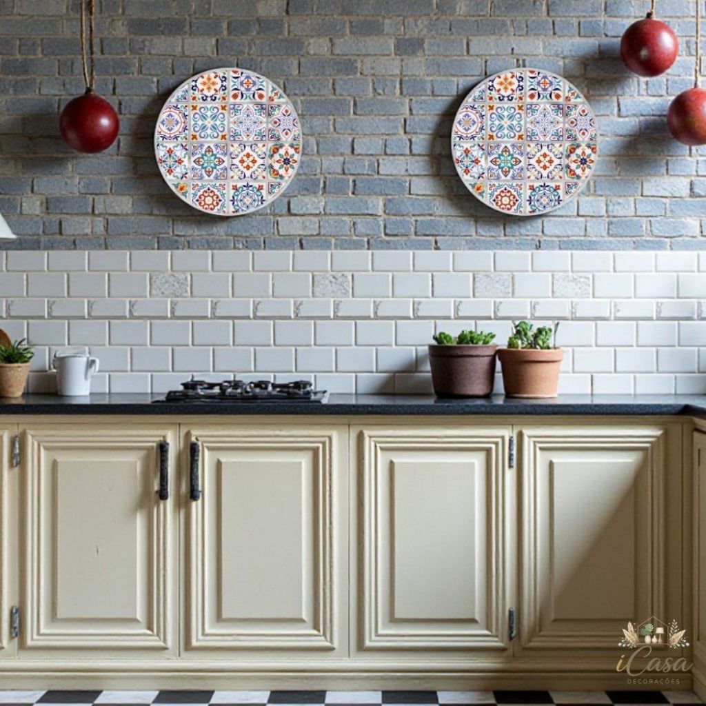Prato de Parede Decorativo Azulejo Português Porcelana Cerâmica com Suporte Tamanho 20cm