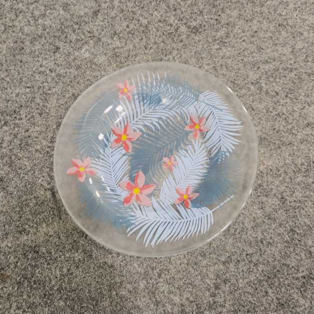 Prato de Vidro Semi-Transparente com Estampa de Flores 2 Tamanhos