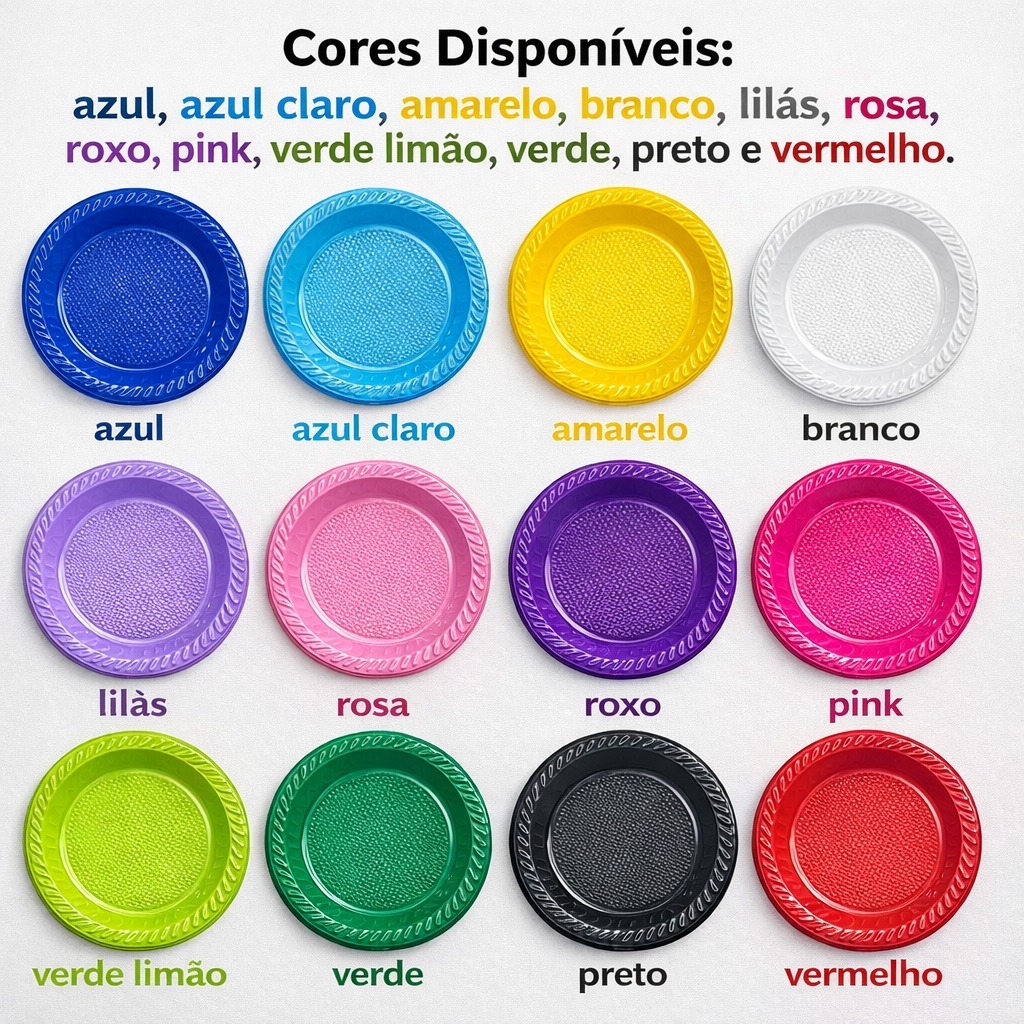PRATO DESCARTÁVEL 15CM 10/20/30/40 E 50 UNIDADES – LOURI FESTAS DIVERSAS CORES (BOLOS E SOBREMESAS)