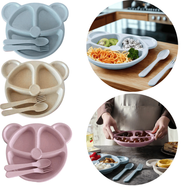 Prato Infantil com Divisórias e Talheres Ursinho – Pratinho para Papinha em Plástico