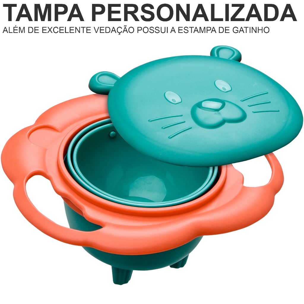 Prato Mágico Giratório Tigela Infantil Tampa Bowl 360º Não Derruba Treinamento Introdução Alimentar