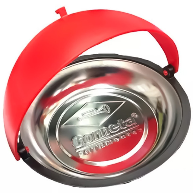 COMERCIAL VIPASA DISTRIBUIDORA Prato Magnético Com Tampa Em Aço Inox Organizadora Prego Parafuso Corneta Ferramentas Profissionais O prato magnético com tampa em aço inox é uma peça utilizada em diversas aplicações, especialmente em ambientes de trabalho onde há a necessidade de organizar e manter peças metálicas, como parafusos, porcas, arruelas, chaves e outras ferramentas pequenas, de forma segura e acessível. Princípio de Funcionamento: O prato magnético possui uma superfície magnética, geralmente na base do prato, que atrai e mantém firmemente peças metálicas próximas a ele. A tampa em aço inox serve para cobrir e proteger as peças armazenadas no interior do prato. Organização de Peças Metálicas: Ele é utilizado para organizar e manter organizadas peças metálicas, como parafusos, porcas, arruelas e outras ferramentas pequenas, evitando que se percam ou se espalhem em ambientes de trabalho. Facilita o Acesso às Peças: Ao manter as peças metálicas organizadas e agrupadas em um único local, o prato magnético facilita o acesso rápido e conveniente a essas peças quando necessário, aumentando a eficiência e produtividade no trabalho. Prevenção de Perdas: O uso do prato magnético ajuda a evitar a perda de peças pequenas e valiosas, que podem ser facilmente perdidas ou danificadas se não estiverem devidamente armazenadas e organizadas. Versatilidade de Uso: Este tipo de prato é versátil e pode ser utilizado em uma variedade de ambientes de trabalho, incluindo oficinas mecânicas, marcenarias, eletrônicas, joalherias, entre outros, onde há a necessidade de organizar e manter peças metálicas à mão. Material de Construção: A tampa em aço inox proporciona durabilidade e resistência à corrosão, mantendo as peças armazenadas no interior do prato protegidas contra a oxidação e outros danos. Fácil Limpeza e Manutenção: O aço inox é um material fácil de limpar e manter, o que facilita a manutenção do prato magnético em boas condições de higiene e funcionamento. O prato magnético com tampa em aço inox é uma ferramenta versátil e eficaz para organizar e manter peças metálicas pequenas em ambientes de trabalho, proporcionando acesso rápido e conveniente às peças enquanto as mantém protegidas e seguras. COMERCIAL VIPASA DISTRIBUIDORA