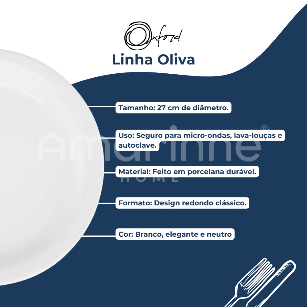 Prato Raso Branco Porcelana 6 Unidades 27cm Refeição Hotel Restaurante Oxford Porcelanas