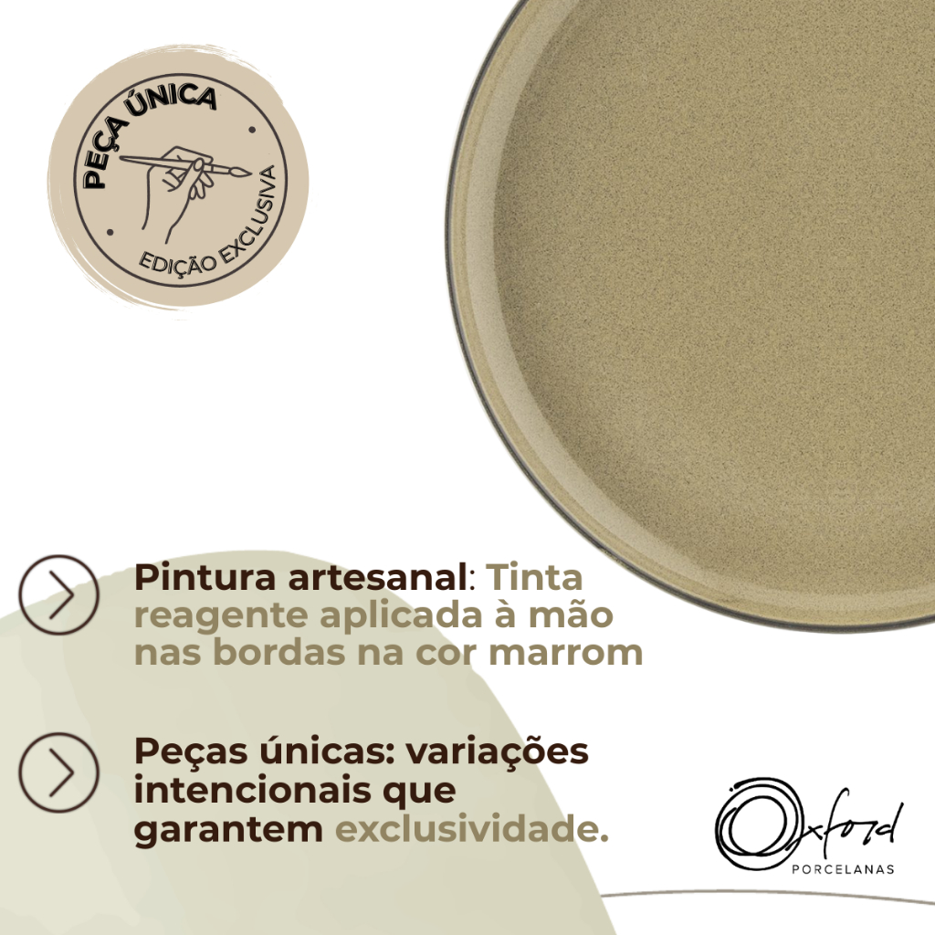 SOBRE O PRODUTO Inspirados na vertente do design biofílico que busca conectar as pessoas com os benefícios da presença da natureza em ambientes e na criação de produtos, apresentamos uma coleção com inspiração natural, trazendo seus elementos mais representativos para um dia a dia mais tranquilo e repleto de bem-estar. Os pratos da linha Flat oferecem uma área maior de uso tornando-se uma opção adequada para empratamentos criativos, além de proporcionarem mais conforto na hora de usar. Com formas retas e funcionais, as peças da linha são fáceis de armazenar até mesmo em armários mais compactos. A decoração Ocre apresenta um tom de marrom suave, assim como é a cor que dá nome a decoração originaria da mistura de amarelo, preto e vermelho. Com acabamento brilhante cada peça ainda recebe a aplicação manual de filete em marrom escuro em sua borda. CONTEÚDO DA EMBALAGEM 6 Prato Raso 26cm ESPECIFICAÇÕES Uso: Resistente a micro-ondas, Resistente a lava-louças Material: Cerâmica Cor: Marrom Linha: Flat Ocre Garantia de Fábrica: 90 dias (defeito de fabricação)