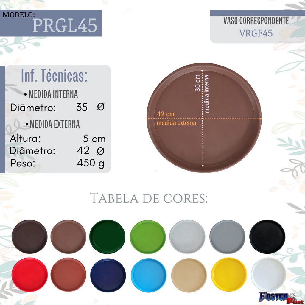 Anúncio válido para 1 (um) Prato Redondo de Resina de Polietileno para Vasos de Plantas. O prato foi desenvolvido para atender nossos vasos da linha Foster Plast, o material é leve e resistente. Ideal para decoração, o conjunto com o prato proporciona mais elegância ao vaso, além evitar vazamentos e danificação a pisos frágeis. .................................................................................................................................................. MEDIDAS TÉCNICAS: • Modelo: PRGL45 • Altura: 5 cm; • Diâmetro Interno: 35 cm • Diâmetro Externo: 42 cm • Peso: 450 g • Material: Polietileno ................................................................................................................................................... GRANDES VANTAGENS DO POLIETILENO · Grande durabilidade, resistência e leveza; · Podem ficar expostos ao sol, chuva, poeira e maresias; · Podem ser mantidos em contato permanente com o solo; · Impermeáveis e laváveis; · Não proliferam fungos e bactérias; · Não mofam e não ressecam; · Não soltam farpas ou rachaduras; · Não desbotam; · Não necessitam de manutenção; · Possuem proteção contra raios ultra-violeta (uv); · Duram mais que concreto, cerâmica, fibra e outros ................................................................................................................................................... PARA QUAISQUER DÚVIDAS, UTILIZE O CHAT! Será um prazer atendê-lo!