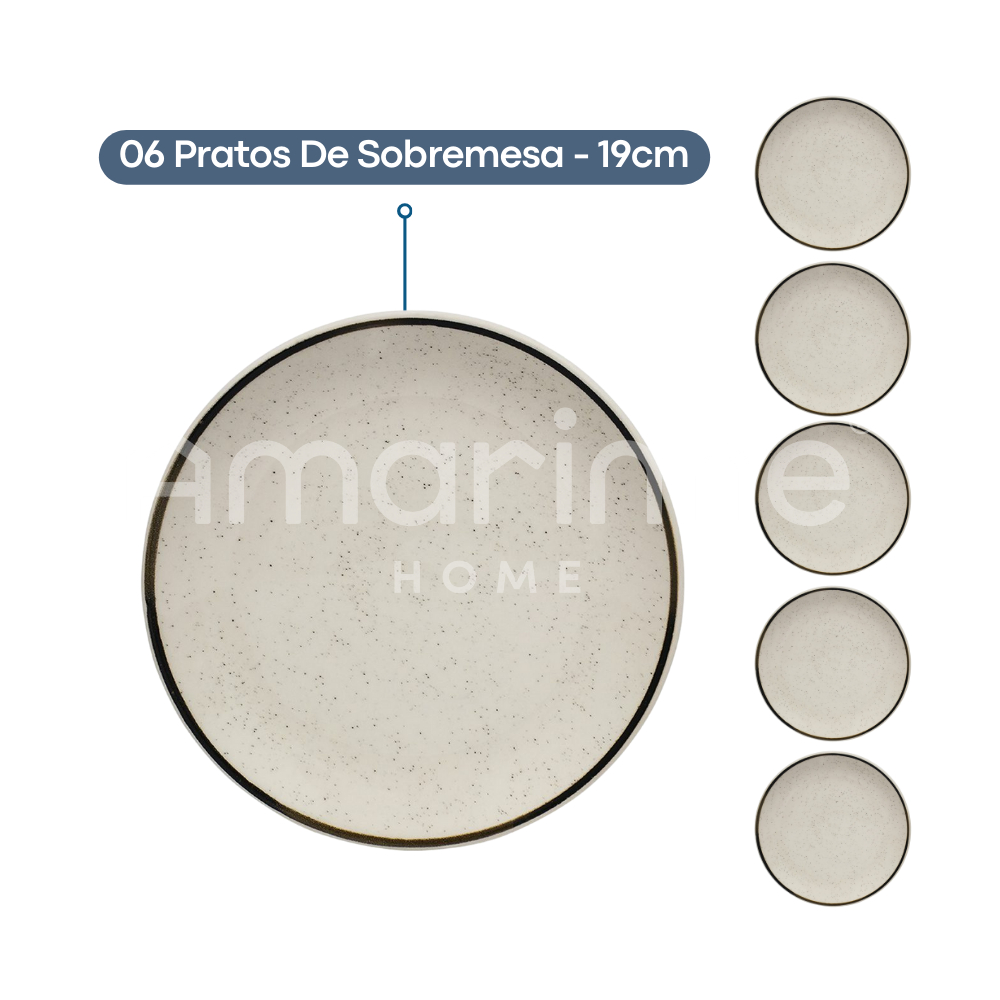 Prato Sobremesa Brisa Areia 6 Unidades 20cm Oxford Porcelanas Jogo Prato Lanche