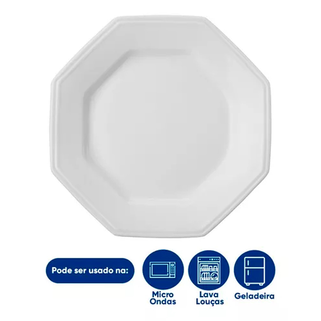 Prato Sobremesa Porcelana Prisma Branco 20cm Octogonal Louça Fina Lanche Mesa Posta Schmidt