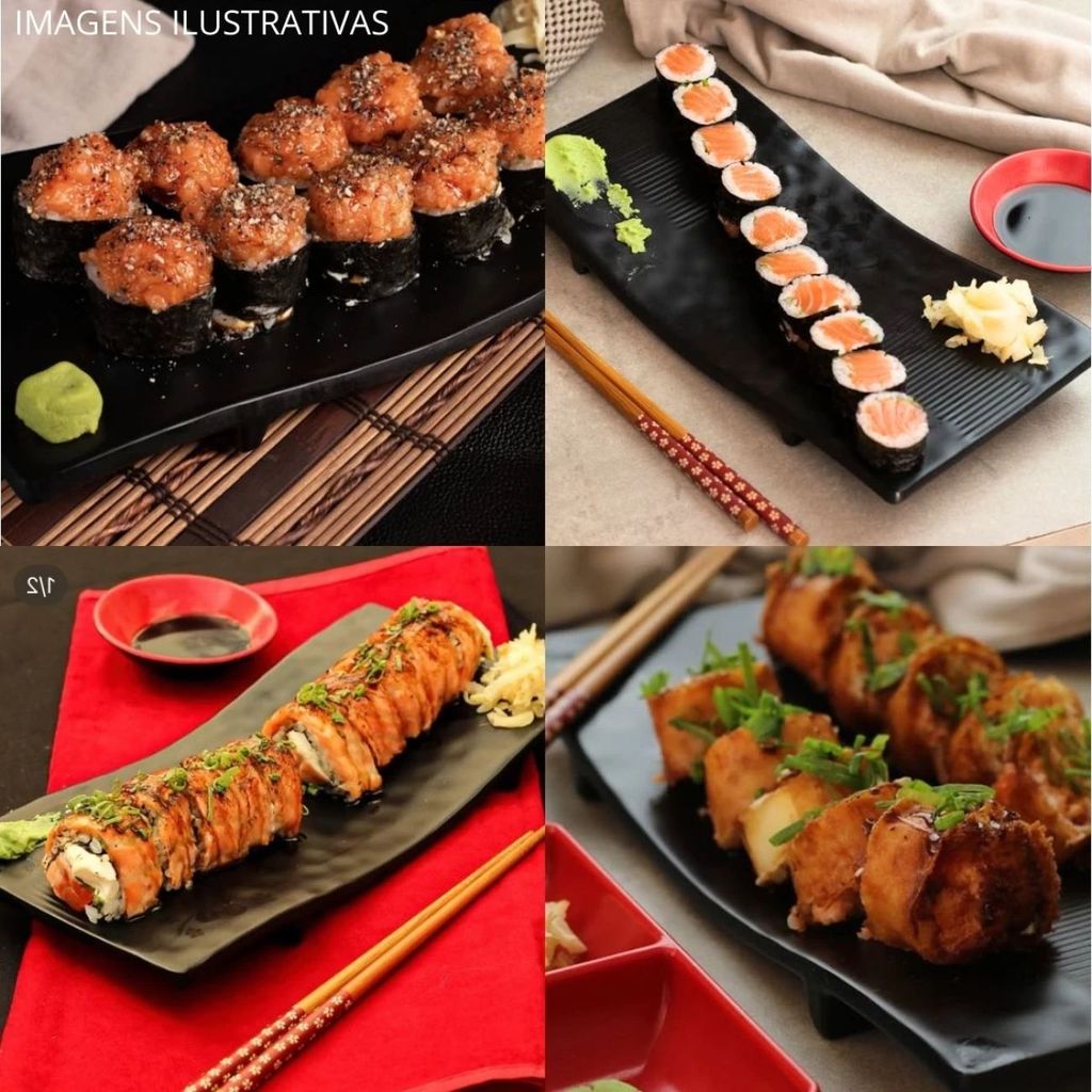Prato Travessa 28x13 Cm Ondulado em Melamina / Plástico para Sushi Cor Preto