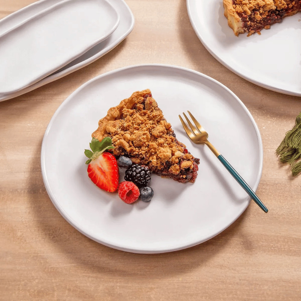 Prato de Sobremesa Bio New White 21,5cm – Porto Brasil Cerâmica | Elegância Minimalista com Acabamento Artesanal O Prato de Sobremesa Bio New White da Porto Brasil combina formato orgânico, acabamento manual e tonalidade neutra para compor uma mesa posta sofisticada e versátil. Produzido em cerâmica de alta resistência, é ideal para servir doces, frutas ou pequenas porções com charme e delicadeza. Uso no Micro-ondas: Pode ser utilizado com segurança no micro-ondas. Para maior cuidado, recomenda-se o uso de luvas térmicas ao manusear e evitar o contato direto com superfícies frias logo após o aquecimento, prevenindo choques térmicos. Efeito Celadon: A linha New White apresenta o característico efeito Celadon – um acabamento natural obtido na queima em altas temperaturas. Esse processo revela sutis variações entre branco e off-white, especialmente nas áreas com relevo, conferindo profundidade e um toque artesanal único a cada peça. Compatível com Lava-louças: Pode ser lavado com segurança na lava-louças. Para preservar o acabamento, recomenda-se retirar resíduos antes da lavagem e evitar sobrecarga da máquina, prevenindo atritos entre as peças. Lavagem Manual: Simples de higienizar com sabão neutro e esponja macia, mantendo o brilho e a qualidade do acabamento artesanal. Especificações do Produto: Diâmetro: 21,5 cm Material: Stoneware Linha: Bio Cor: New White (branco com variações naturais) Marca: Porto Brasil Origem: Nacional Diferenciais: Design orgânico com acabamento manual Efeito Celadon que valoriza textura e profundidade Alta resistência térmica e mecânica Ideal para sobremesas, frutas e porções pequenas Estilo clean e contemporâneo que combina com qualquer ocasião O Prato de Sobremesa Bio New White da Porto Brasil é ideal para quem valoriza elegância discreta, durabilidade e a beleza do artesanal em cada detalhe.