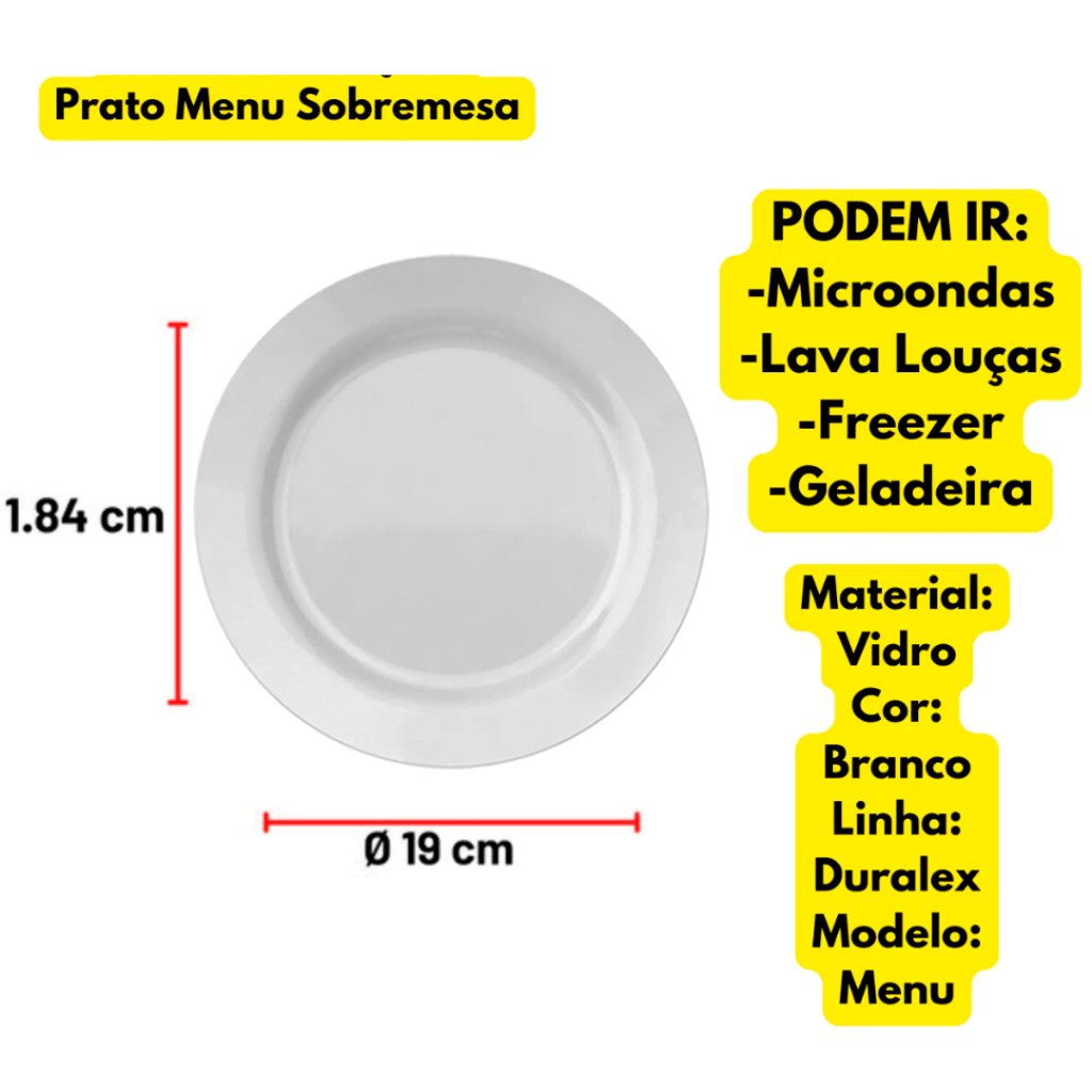 Pratos Duralex Sobremesa 06 Peças em Vidro Menu Duralex Opaline Branco Buffet Lanchonete