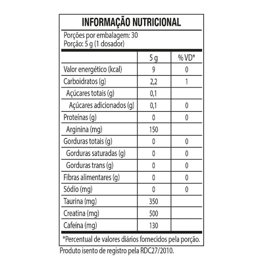 INFORMAÇÃO NUTRICIONAL Pré-Treino com Cafeína Sabor Frutas Vermelhas Contém 150g DESCRIÇÃO O B.O.P.E™ é um suplemento alimentar em pó sabor frutas vermelhas. Sua formulação contém cafeína, arginina, taurina, creatina e maltodextrina, em combinação com beta alanina e aromatizantes. INGREDIENTES Maltodextrina, creatina monohidratada, taurina, L-arginina, cafeína anidra, aromatizante sápido: beta alanina, aromatizante sintético idêntico ao natural de frutas vermelhas, acidulante ácido cítrico, antiumectante dióxido de silício, edulcorante sucralose, espessante goma xantana e corante artificial vermelho allura AC. NÃO CONTÉM GLÚTEN. MODO DE USO Misturar 1 colher de chá (aprox. 5 g) em 150 ml de água e consumir uma vez ao dia, ou conforme orientação de profissional de saúde. RECOMENDAÇÃO Produto destinado a adultos (=19 anos). O consumo deve estar associado a uma alimentação equilibrada e hábitos de vida saudáveis. Consumir imediatamente após o preparo. Após aberto, manter em local seco, ao abrigo da luz e consumir em até 30 dias.