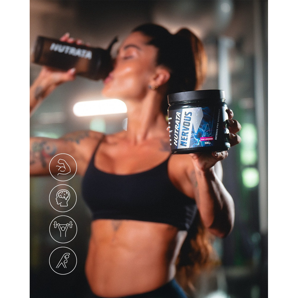 O Nutrata Nervous é um pré-treino formulado com ingredientes de alto impacto. Esse produto é voltado para o público que busca maior potência e intensidade nos treinos, alcançando uma performance de outro nível. A cafeína auxilia no aumento do estado de alerta e na melhora da concentração, além de aumentar a capacidade de resistência e desempenho nos exercícios físicos de resistência. Com Isomaltulose (PalatinoseTM). A colina contribui para o metabolismo lipídico. Ingredientes: Beta alanina, arginina, taurina, isomaltulose (Palatinose ™), bitartarato de colina, tirosina, cafeína, acidulante ácido cítrico, aromatizantes, antiumectante dióxido de silício, edulcorante sucralose e corante amarelo crepúsculo FCF. NÃO CONTÉM GLÚTEN