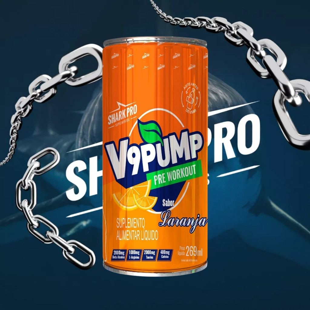 Pré-Treino V9 Pump Drink 269ml Shark Pro – Sabor Laranja Sobre o produto: O suplemento principal do V9 Pump é a beta-alanina, que atua como precursor da carnosina, ajudando a reduzir a fadiga muscular durante os treinos intensos. O V9 Pump é um pré-treino líquido pronto para o consumo, ideal para quem busca praticidade e desempenho máximo nos treinos. Com uma combinação estratégica de ingredientes como L-arginina, taurina e cafeína, ele foi desenvolvido para aumentar o foco, a disposição e o rendimento físico. Seu sabor Laranja oferece uma experiência agradável e refrescante, enquanto sua fórmula líquida promove rápida absorção. Como consumir: Agite antes de usar. Consumir 1 unidade (269ml) cerca de 30 minutos antes do treino ou conforme recomendação de nutricionista ou médico. Benefícios: - 2000 mg de beta-alanina por dose, contribuindo para o aumento da resistência muscular - 1000 mg de L-arginina, que auxilia na vasodilatação e melhora o fluxo sanguíneo - 2000 mg de taurina, importante para a contração muscular e função neuromuscular - 400 mg de cafeína, estimulante que promove energia, foco e disposição - Fórmula líquida de rápida absorção - Produto pronto para consumo, ideal para o dia a dia agitado Alergênicos: Não contém glúten. Pode conter traços de derivados de leite, soja e ovos, pois é produzido em local que manipula esses ingredientes. Ingredientes: Água, beta-alanina, L-arginina, taurina, cafeína anidra, acidulante ácido cítrico, aroma idêntico ao natural de cola, conservadores benzoato de sódio e sorbato de potássio, edulcorantes sucralose e acessulfame de potássio, corante caramelo IV. Advertências: Este produto não deve ser consumido por gestantes, lactantes, crianças, pessoas com sensibilidade à cafeína ou portadores de doenças pré-existentes sem orientação médica. Não exceder a dose recomendada. Mantenha fora do alcance de crianças. Conservar em local seco, fresco e ao abrigo da luz solar direta. Após aberto, consumir imediatamente. Conclusão: O V9 Pump da Shark Pro é uma excelente opção para quem busca mais energia, foco e desempenho nos treinos. Com uma fórmula potente e equilibrada, oferece praticidade e ação rápida, sendo ideal para atletas e praticantes de atividade física que desejam potencializar seus resultados.