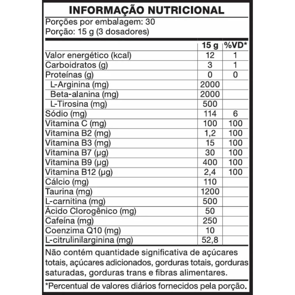 Sobre o produto: Viking Valhalla da Canibal Inc é um pré-treino de altíssima potência, desenvolvido para atletas que exigem desempenho máximo em treinos intensos. Sua fórmula conta com mais de 20 ingredientes multifuncionais, cuidadosamente combinados em doses eficazes e apoiadas por pesquisas científicas. Elaborado com o suporte do time de atletas da marca, Viking Valhalla entrega aumento de força, foco, energia, resistência e melhora significativa da performance. Com ingredientes como beta-alanina, L-arginina, cafeína, coenzima Q10, vitaminas do complexo B e extratos naturais, este pré-treino é ideal para quem leva o treino a sério. Como consumir - Diluir 15g (3 dosadores) em 300 ml de água, utilizando mixer, coqueteleira ou liquidificador. - Consumir 30 minutos antes do treino. - A porção pode ser fracionada em até 40 ml a cada 2 horas, conforme orientação profissional. Benefícios - Aumenta a força e a resistência muscular - Melhora a circulação e o fluxo sanguíneo (efeito vasodilatador) - Potencializa o desempenho físico em treinos intensos - Contribui para maior foco, energia e disposição mental - Reduz a fadiga durante o exercício - Combinação avançada de nutrientes, aminoácidos, extratos e vitaminas - Fórmula testada e aprovada por atletas Alergênicos: Não contém glúten. Pode conter peixes e crustáceos (caranguejo, lagosta, lagostim coral e camarão). Ingredientes: Isomaltulose, beta-alanina, L-arginina, L-tirosina, tartarato de L-carnitina, cafeína, fosfato de cálcio tribásico, vitamina C (ácido ascórbico), alga Chondrus crispus, guaraná em pó, extrato de café verde, taurina, vitamina B3 (niacina), coenzima Q10, vitamina B2 (riboflavina), vitamina B9 (ácido fólico), vitamina B7 (biotina), vitamina B12 (cianocobalamina), glicerol (agente de massa), citrato de sódio (regulador de acidez), aromas naturais de gengibre, pimenta preta, chá verde e aromas idênticos ao natural (conforme o sabor), corantes artificiais, espessante goma xantana, edulcorante sucralose. Contém citrulina. Advertências - Este produto não é um medicamento. - Não exceder a recomendação diária. - Mantenha fora do alcance de crianças. - Pessoas com condições pré-existentes, gestantes, lactantes ou sensíveis à cafeína devem consultar um profissional de saúde antes do consumo. - Contém ingredientes com potencial efeito estimulante. - Colorido artificialmente. Apresentação: Pote com 450g. Disponível em sabores variados: Limão, Melancia e Pink Lemonade. Conclusão: Viking Valhalla da Canibal Inc é um pré-treino avançado, completo e poderoso, ideal para quem busca ultrapassar os próprios limites. Com mais de 20 ingredientes eficazes e testado por atletas, oferece energia, foco e força em um único suplemento, sendo uma escolha estratégica para treinos intensos e de alta performance.