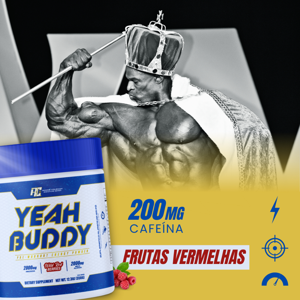 Ronnie Coleman e sua marca Pré Treino Yeah Buddy Sabor Frutas Vermelhas Rush 350g O mais recente de Ronnie Coleman e sua marca é o Yeah Buddy, um pré-treino mais intenso, potente e de maior impacto, centrado em fornecer uma poderosa mistura de energia e foco mental. A fórmula por trás do suplemento certamente reflete isso, já que todos os seus principais ingredientes são conhecidos pelos benefícios sensoriais de maior energia e foco. Ronnie Coleman Signature Series marca importada, esta em 121 paises, instalações de fabricação certificadas e usa ingredientes que passam por rigorosos controles de qualidade, até chegar ao produto pronto para consumir. Além disso, eles têm certificações internacionais de autenticidade, que garantem ainda mais sua excelência. Uma nutrição equilibrada tem um papel muito importante na qualidade de vida. Com o ritmo acelerado de muitas pessoas, às vezes, é muito difícil prestar atenção a todos os requisitos que o corpo precisa para estar saudável e forte. Neste sentido, os suplementos cumprem a função de complementar a alimentação e ajudam a obter as vitaminas, minerais, proteínas e outros componentes indispensáveis para o correto funcionamento do organismo. Suplemento esportivo Esse tipo de suplemento ajuda a complementar a alimentação de pessoas com objetivos ou requisitos nutricionais específicos. Seu consumo pode ser indicado por vários fatores, como a duração e a intensidade da atividade física, o tipo de esporte, o ambiente em que é praticado, a idade, a composição corporal, o peso, etc. É importante destacar que seu uso deve ser acompanhado por uma alimentação equilibrada e hábitos de vida saudáveis. *Este produto é um suplemento dietético, não é um medicamento. Suplementa Ante dietas insuficientes. Consulte seu médico e / ou farmacêutico.