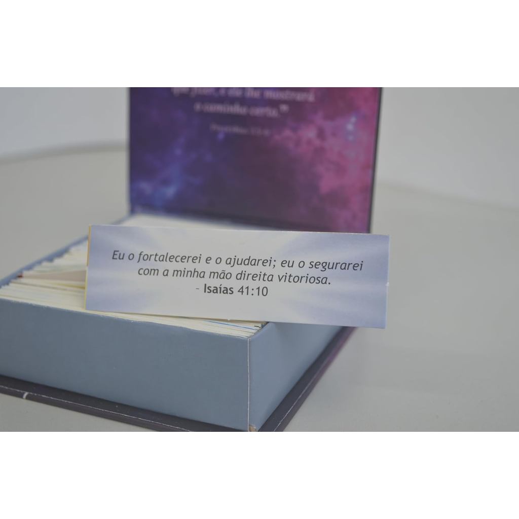 Descubra o consolo e a direção que só a Palavra de Deus pode oferecer. Preciosas Promessas de Deus é muito mais do que uma coletânea de versículos ― é um encontro diário com o cuidado, o amor e a fidelidade do Senhor. Em formato de folhas soltas, com letras grandes e de fácil leitura, cada promessa foi escolhida para tocar o coração, renovar a fé e fortalecer a esperança. A dinâmica é simples e transformadora: escolha uma folha ao acaso e deixe que Deus fale com você. Cada versículo é como um abraço do Céu, trazendo exatamente a palavra que você precisa para aquele momento. Ideal para devocionais, presentes especiais ou para manter sempre por perto no lar, no trabalho ou na igreja, essa caixa de promessas é um convite diário à intimidade com Deus. Presenteie-se com essa experiência ― ou abençoe alguém que você ama com palavras que curam, encorajam e inspiram. 220 versículos 10x10 cm