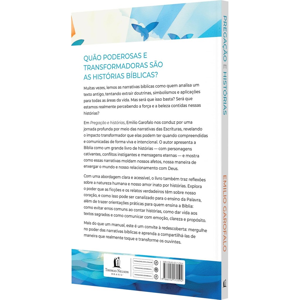 Quão poderosas e transformadoras são as histórias bíblicas? Muitas vezes, lemos as narrativas bíblicas como quem analisa um texto antigo, tentando extrair doutrinas, simbolismos e aplicações para todas as áreas da vida. Mas será que isso basta? Será que estamos realmente percebendo a força e a beleza contidas nessas histórias? Em Pregação e Histórias, Emilio Garofalo nos conduz por uma jornada profunda por meio das narrativas das Escrituras, revelando o impacto transformador que elas podem ter quando compreendidas e comunicadas de forma viva e intencional. O autor apresenta a Bíblia como um grande livro de histórias ― com personagens cativantes, conflitos instigantes e mensagens eternas ― e mostra como essas narrativas moldam nossos afetos, nossa maneira de enxergar o mundo e nosso relacionamento com Deus.Com uma abordagem clara e acessível, o livro também traz reflexões sobre a natureza humana e nosso amor inato por histórias. Explora o poder que as ficções e os relatos verdadeiros têm sobre nosso coração, e como isso pode ser canalizado para o ensino da Palavra e traz orientações práticas para quem ensina a Bíblia: como evitar erros comuns ao contar histórias, como dar vida aos textos sagrados e como comunicar com emoção, clareza e propósito. Mais do que um manual, este é um convite à redescoberta: mergulhe no poder das narrativas bíblicas e aprenda a compartilhá-las de maneira que realmente toque e transforme os ouvintes. 23X16 CM 176 Páginas