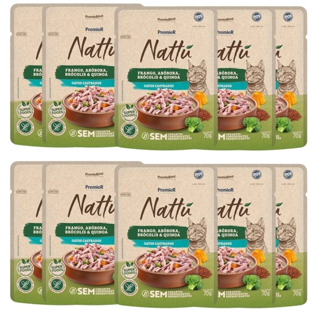 | Premier Nattu Sachê Gatos Castrados Frango Abóbora 10UN este produto | R$ 96,52 | 20% | 4.9/5 | 5 |