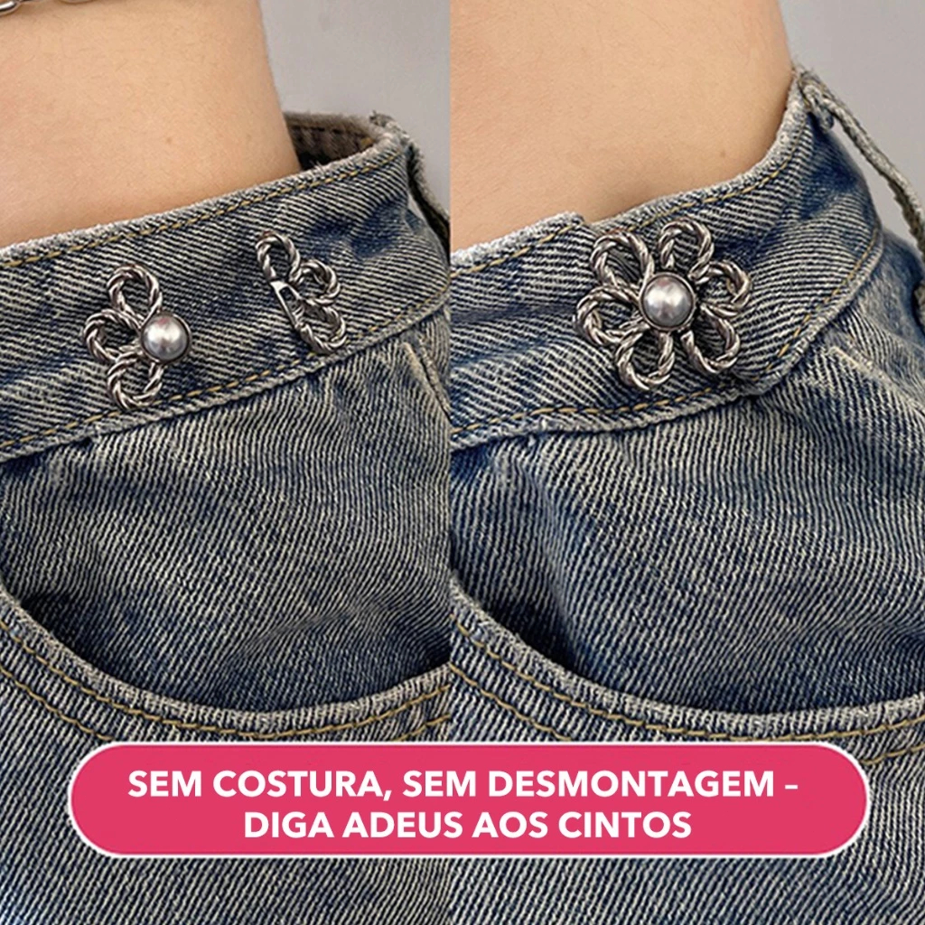 Prendedor Botão Calças Jean Fecho Sem Cinto Ajuste Cintura Removível Floral Decorativo Anti-Deslizante