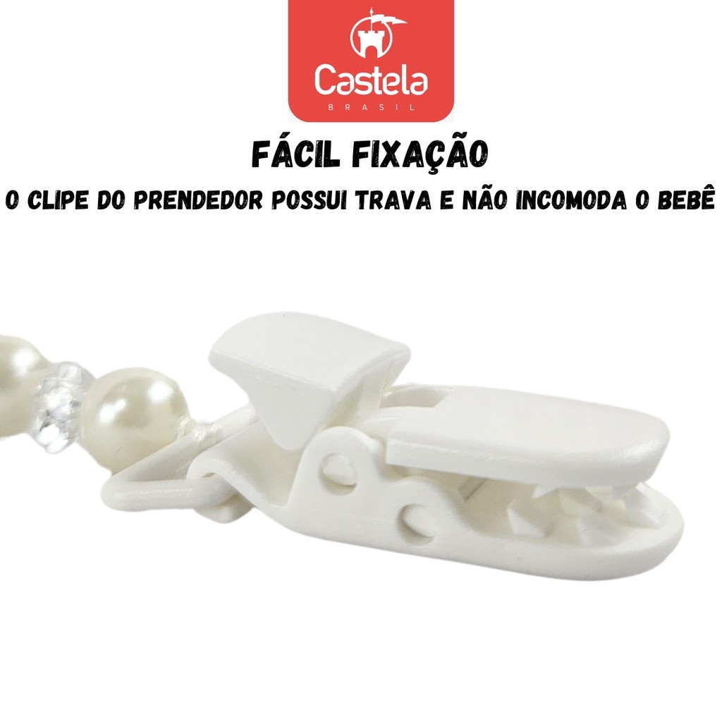 Prendedor de Chupeta Baby Branco Perola Trava Clipe Livre BPA - Castela