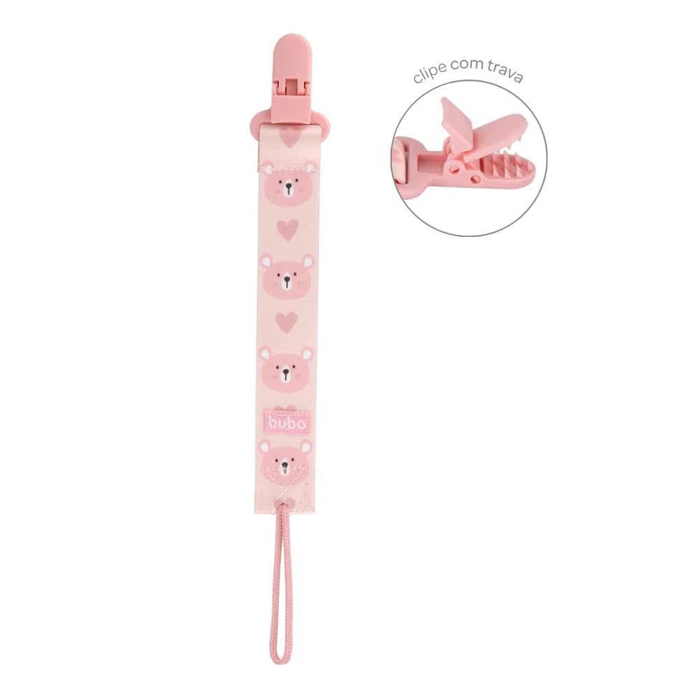 Prendedor de Chupeta Buba Clip com Trava 3+ Meses Rosa 1 Unidade