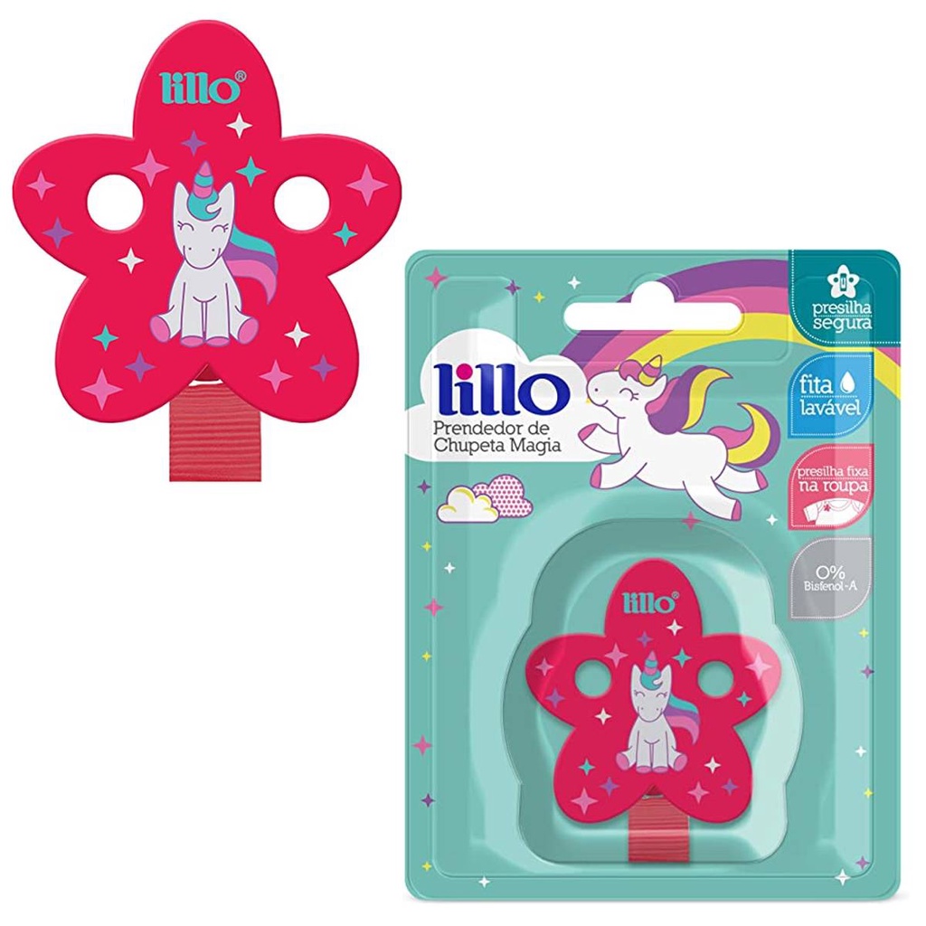 Prendedor De Chupeta Magia Rosa - Lillo O Prendedor de Chupetas Magia Lillo é prático e possui fita em tecido que pode ser lavada facilmente. Sua presilha é segura, resistente e com fácil fixação na roupa do bebê, evitando quedas e frequentes perdas de chupetas. "O MINISTÉRIO DA SAÚDE ADVERTE: A CRIANÇA QUE MAMA NO PEITO NÃO NECESSITA DE MAMADEIRA, BICO OU CHUPETA. O USO DE MAMADEIRA, BICO OU CHUPETA PREJUDICA O ALEITAMENTO MATERNO." Principais Características: - Idade recomendada: A Partir do Nascimento - Possui fita em tecido - Presilha segura - Leia atentamente as instruções de uso no rótulo do produto. Especificações Técnicas: - Conteúdo da Embalagem: 1 Prendedor de Chupeta - Composição/Material: Polipropileno e Silicone - Garantia: 30 Dias (Contra Defeito de Fabricação) - Código do Fabricante: 624630 - EAN: 7896033241779 - Marca: Lillo * Fotos ilustrativas! Cores e modelos podem variar conforme fabricação.