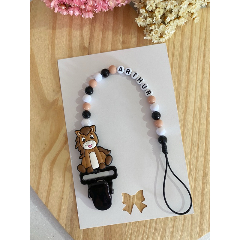 Prendedor de chupeta personalizado com tema e nome para menino