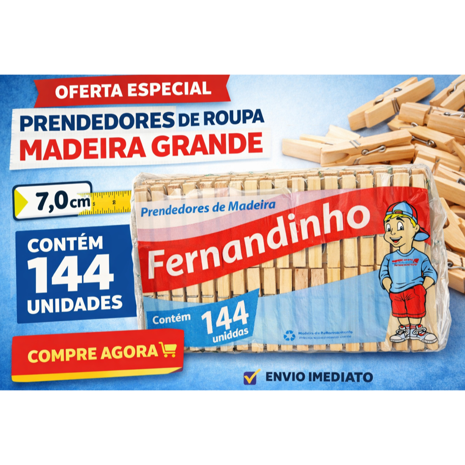 O produto Prendedor Madeira 7cm Grande Kit 144 Unidades ou 72 Unidades é um item na subcategoria Pregadores de Madeira (de Casa e Decoração), disponível na Shopee Brasil por R$ 19,99.