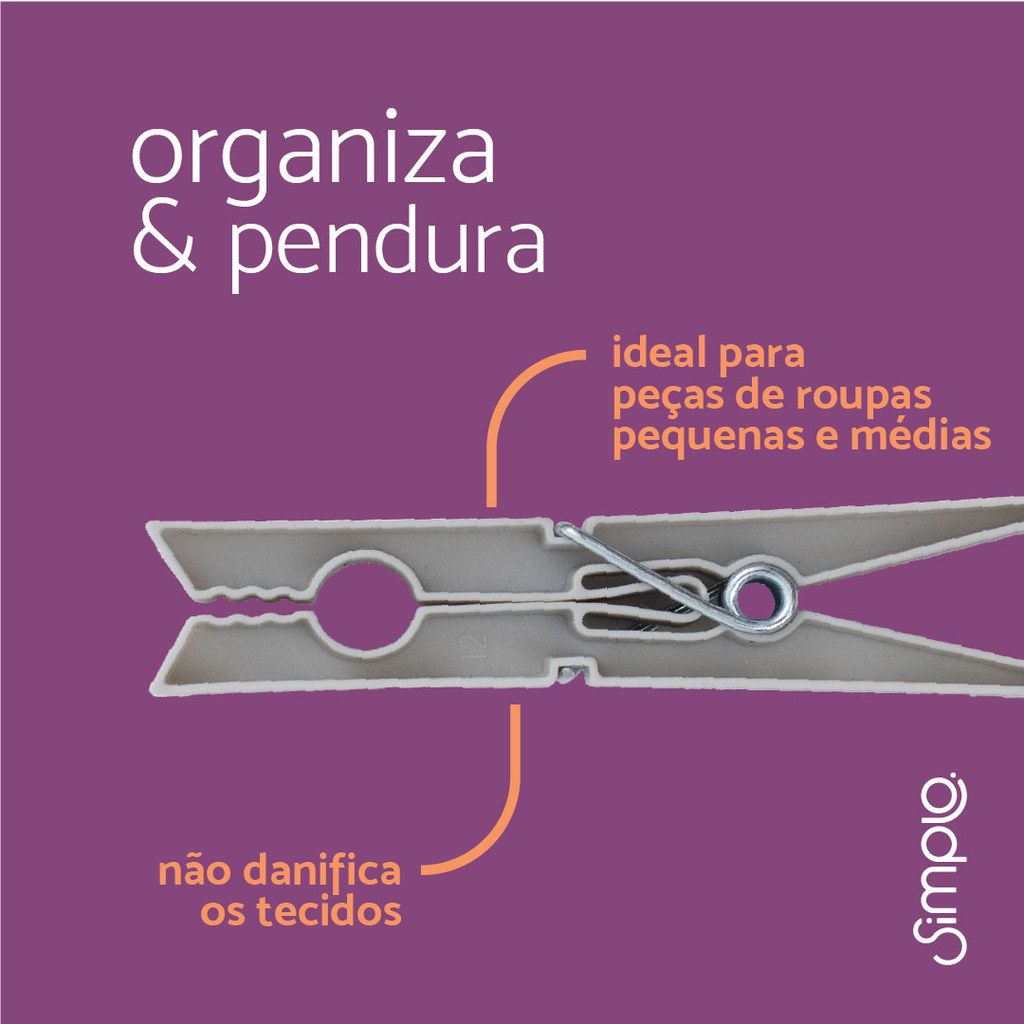 "Conheça os Prendedores de plástico multiuso 12 peças da Simplo. Práticos e resistentes, são ótimos para fixar roupas no varal e fechar embalagens. Pode ser utilizado para prender peças de roupa pequenas e médias e para fechar pacotes. Não danificam e não deixam marca nos tecidos e possuem alta durabilidade. São de PP e Aço. Evite a exposição constante do produto à luz solar. Leve funcionalidade e modernidade para sua casa! Aperte para abrir os prendedores e fixar as peças. Ideal para ser utilizado na lavanderia com peças pequenas e médias. Também pode ser utilizado na dispensa para fechar embalagens. - Não danifica e não deixa marca nos tecidos - Alta durabilidadeÉ simplo. os prendedores são fabricados em polipropileno de alta durabilidade. A mola de aço garante a fixação ideal para prender as roupas no varal e as embalagens em segurança.A exposição constante á luz solar pode ressecar o plástico e diminuir sua durabilidade. Não pode: - Ser guardado sob a luz solar ou perto de fontes de calor. - Deixar ao alcance de crianças."