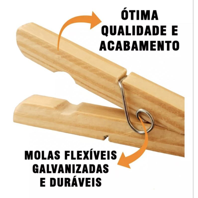 Prendedores de Roupa Madeira Águia Branca Clássico 96 Peças